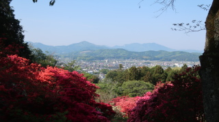 四方視界が開けた山頂の展望台からの眺めは、見頃となったツツジの色どりが爽快である。また、小高く開けた山頂には観光土産販売所やソフトクリームなどの売店もあり、少しづつ賑わい出した。 |