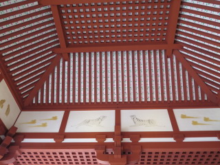大極殿とは古代の宮都における中心施設。天皇の即位など国家儀式の際に天皇が出御する場所。遺構の検出状況から建物の造りを推測し、法隆寺金堂や薬師寺東塔など参考に復元された。 |
